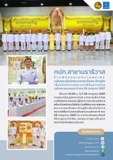 เมื่อเวลา 10.00 น. วันที่ 28 กรกฎาคม 2567 การประปาส่วนภูมิภาค (กปภ.) สาขานราธิวาส โดยนายศักรินทร์ ถนอมพร ผู้จัดการ กปภ.สาขานราธิวาส พร้อมด้วยพนักงานในสังกัด ร่วมพิธีลงนามถวายพระพรพระบาทสมเด็จพระเจ้าอยู่หัวเนื่องในโอกาสพระราชพิธีมหามงคลเฉลิมพระชนมพรรษา 6 รอบ 28 กรกฎาคม 2567 ณ อาคารเฉลิมพระเกียรติสิริกาญจนาทักษิณ เขตพระราชฐานชั้นนอก พระตำหนักทักษิณราชนิเวศน์