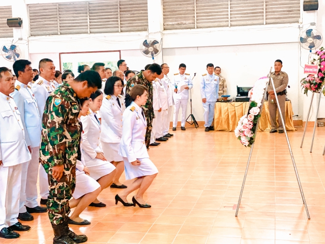 วันที่ 23 ตุลาคม 2567 กปภ.สาขากุยบุรี นำโดยนางอารีนันท์ นราวัฒนเศรษฐ์ ผู้จัดการ กปภ.สาขากุยบุรี พร้อมด้วยหัวหน้างานและพนักงานในสังกัด เข้าร่วมพิธีวางพวงมาลาถวายราชสักการะ พระบรมฉายาลักษณ์พระบาทสมเด็จพระจุลจอมเกล้าเจ้าอยู่หัว พร้อมร่วมเข้าพิธีทำบุญตักบาตร เพื่อน้อมรำลึกเนื่องในวันคล้ายวันสวรรคตพระบาทสมเด็จพระจุลจอมเกล้าเจ้าอยู่หัว "วันปิยมหาราช" 23 ตุลาคม 2567 ณ หอประชุมอำเภอกุยบุรี ตำบลกุยบุรี อำเภอกุยบุรี จังหวัดประจวบคีรีขันธ์ เมื่อวันที่ 23 ตุลาคม 2567 โดยในกิจกรรมดังกล่าว กปภ.สาขากุยบุรี ได้ร่วมถวายพวงมาลา เพื่อน้อมรำลึกถึงพระมหากรุณาธิคุณอันล้นพ้นของพระบาทสมเด็จพระจุลจอมเกล้าเจ้าอยู่หัวฯ รัชกาลที่ 5 ซึ่งทรงมีคุณูปการต่อประเทศชาติอย่างอเนกอนันต์ รวมถึงทรงเป็นพระมหากษัตริย์ที่ทรงพระปรีชาสามารถและทรงมีวิสัยทัศน์กว้างไกลในการนำพาประเทศชาติไปสู่ความเจริญรุ่งเรืองในทุกๆ ด้าน ทั้งด้านการเมือง การปกครอง เศรษฐกิจ สังคม และวัฒนธรรม