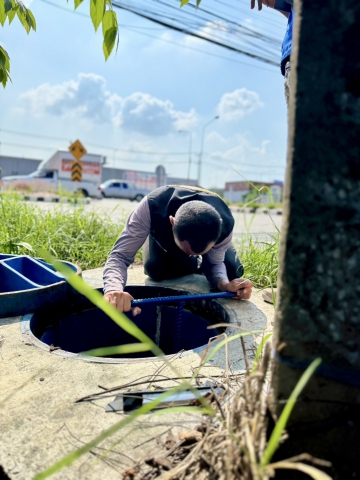 เมื่อวันที่ 24 ตุลาคม 2567 กปภ.สาขารังสิต(พ) นำโดยนายขวัญชัย กิจกอบชัย ผู้จัดการการประปาส่วนภูมิภาค(ชั้นพิเศษ)สาขารังสิต มอบหมายให้ นายสิทธิชัย ปลื้มอารมณ์ หัวหน้างาน 8 งานบริการและควบคุมน้ำสูญเสีย 1 นายโอฬาร สุขสิมิตร หัวหน้างาน 8 งานบริการและควบคุมน้ำสูญเสีย 2 นายเจริญ งามละมัย หัวหน้างาน 8 งานบริการและควบคุมน้ำสูญเสีย 3 พร้อมพนักงานในสังกัด ดำเนินการทำ Step Test (หาจุดแตกรั่วในเส้นท่อ) เพื่อสำรวจหาท่อแตกรั่วในพื้นที่ทั้งบนดินและใต้ดิน โดยใช้เครื่องมือสำรวจหาจุดท่อแตกรั่ว ตรวจสอบการใช้งานท่อ อุปกรณ์และประตูน้ำในระบบจ่ายน้ำประปา ทดสอบแรงดันน้ำ และดำเนินการซ่อมจุดแตกรั่ว เพื่อบำรุงรักษาระบบให้สามารถใช้งานได้อย่างมีประสิทธิภาพ เพื่อลดน้ำสูญเสียในระบบที่เกิดขึ้น ณ บริเวณตำบลบ้านกลาง อำเภอเมืองปทุมธานี จังวัดปทุมธานี