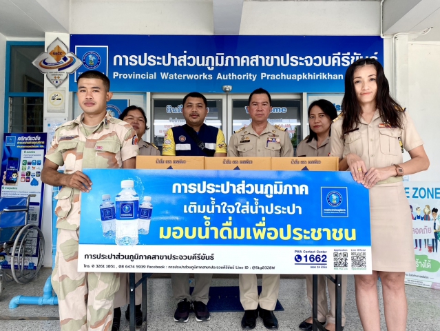 ในวันพุธ ที่ 27 พฤศจิกายน 2567 กปภ.สาขาประจวบคีรีขันธ์ นำโดยนายศิริทัย สวัสดิ์อารี ผจก.กปภ.สาขาประจวบคีรีขันธ์ พร้อมด้วยหัวหน้างานและพนักงานในสังกัดมอบน้ำดื่ม จำนวน 500 แก้ว ให้กับที่ทำการปกครองจังหวัดประจวบคีรีขันธ์ เพื่อใช้ในกิจกรรมจิตอาสา รอบเขตพระราชฐาน (วังไกลกังวล) เนื่องในวันคล้ายวันพระบรมราชสมภพพระบาทสมเด็จพระบรมชนกาธิเบศร มหาภูมิพลอดุลยเดชมหาราชบรมนาถบพิตร และวันพ่อแห่งชาติ 5 ธันวาคม 2567 ซึ่งจัดขึ้นในวันที่ 4 ธันวาคม 2567 ณ โรงเรียนไกลกังวล ในพระบรมราชูปถัมภ์ (ฝั่งประถมศึกษา) ตำบลหัวหิน อำเภอหัวหิน จังหวัดประจวบคีรีขันธ์