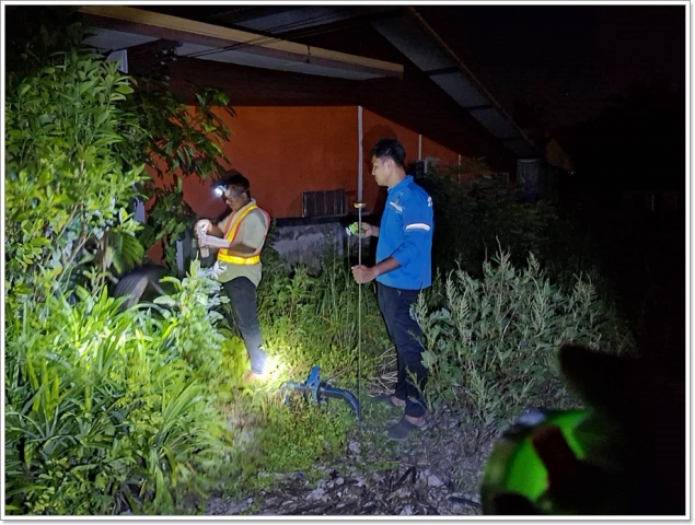 ลงพื้นที่ปฏิบัติงานลดน้ำสูญเสีย โดยวิธีการเดินหาท่อแตกรั่ว ตั้งแต่สะพานบางคู - อบต.ควนทอง ม.3 ต.ควนทอง อ.ขนอม จ.นครศรีธรรมราช