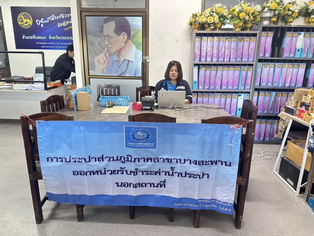 วันพุธที่ 18 ธันวาคม 2567 การประปาส่วนภูมิภาคสาขาบางสะพาน นำโดยนายรัตนิกร หน่อแก้ว ผจก.กปภ.สาขาบางสะพาน และนางนวพรรษ ครามทอง หัวหน้างาน8 งานจัดเก็บรายได้ และพนักงานในสังกัด ออกหน่วยบริการรับชำระค่าน้ำประปา และรับคำขอติดตั้งประปานอกสถานที่ ณ ที่ว่าการอำเภอทับสะแก เทศบาลตำบลทับสะแก อำเภอทับสะแก จังหวัดประจวบคีรีขันธ์ ประจำเดือน ธันวาคม 2567 เพื่อให้บริการอำนวยความสะดวกแก่ผู้ใช้น้ำในพื้นที่ที่ห่างไกลจากสำนักงาน อีกทั้งเป็นการประชาสัมพันธ์, รับฟังและให้คำแนะนำการใช้ PWA Line Official , มอบของขวัญพรีเมี่ยมให้กับลูกค้าที่มาใช้บริการ พร้อมแจ้งกำหนดการออกหน่วยของเดือนถัดไป เพื่อความสะดวกในการใช้บริการจ่ายชำระค่าน้ำประปาของผู้ใช้น้ำ