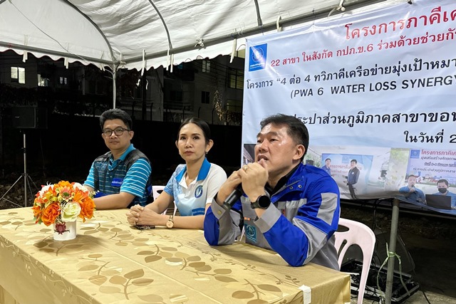นายสมพร นันตะ ผู้อำนวยการการประปาส่วนภูมิภาคเขต 6 (ผอ.กปภ.ข.6) พร้อมด้วย นางมนทกานติ์ คมขาว ผู้ช่วยผู้อำนวยการการประปาส่วนภูมิภาคเขต 6 (บริหาร) นายธีรศักดิ์ กิตติศิริวัฒนกุล ผู้จัดการการประปาส่วนภูมิภาค (ชั้นพิเศษ) สาขาขอนแก่น นายกิตติพงษ์ พรหมสาขา ณ สกลนคร ผู้อำนวยการกองระบบจำหน่าย ตลอดจนคณะผู้บริหาร หัวหน้างาน และพนักงานในสังกัด ร่วมกิจกรรม Active Leak Control เดินสำรวจหาท่อแตก-รั่ว ในพื้นที่ให้บริการของ กปภ.สาขาขอนแก่น (พ) ซึ่งในโอกาสนี้ ผอ.กปภ.ข.6 ได้มอบนโยบายการดำเนินงานฯ พร้อมพบปะพนักงานที่เข้าร่วมกิจกรรมจาก 22 สาขา ในสังกัด 4 กลุ่มภาคี ได้แก่ ภาคีแก่นคูณ ภาคีแก่นสาร ภาคีร้อยสินธุ์ และภาคีชัยภูมิ จากนั้น ได้ปล่อยขบวนกลุ่มภาคีเครือข่ายไปสำรวจตามแนวท่อให้บริการจุดต่างๆ ภายใน อ.เมืองขอนแก่น มุ่งเป้าหมายลดน้ำสูญเสียได้อย่างมีประสิทธฺิภาพ เพื่อลูกค้าได้ใช้น้ำอย่างต่อเนื่องและเพียงพอสำหรับการอุปโภคและบริโภค ซึ่งกิจกรรมนี้เป็นส่วนหนึ่งของโครงการ 4 ต่อ 4 ทวิภาคีเครือข่ายมุ่งเป้าหมายลดน้ำสูญเสียอย่างมืออาชีพ (PWA 6 WATER LOSS SYNERGY CHALLENGE) โดยกิจกรรม Active Leak Control จัดขึ้น ณ สถานีจ่ายน้ำรัตนาภา กปภ.สาขาขอนแก่น (พ) เมื่อวันที่ 30 มกราคม 2568