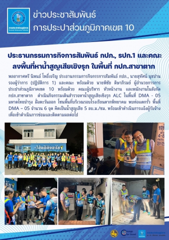 พลอากาศตรี นิพนธ์ โพธิ์เจริญ ประธานกรรมการกิจกรรการสัมพันธ์ กปภ., นายสุทัศน์ นุชปาน รองผู้ว่าการ (ปฏิบัติการ 1) และคณะ พร้อมด้วย นายพิชัย ดิษาภิรมย์ ผู้อำนวยการการประปาส่วนภูมิภาคเขต 10 พร้อมด้วย คณะผู้บริหาร หัวหน้างาน และพนักงานในสังกัด กปภ.สาขาตาก ดำเนินกิจกรรมเดินสำรวจหาน้ำสูญเสียเชิงรุก ALC ในพื้นที่ DMA -05-มหาดไทยบำรุง ฝั่งตะวันออก โซนพื้นที่บริเวณรอบโรงเรียนตากพิทยาคม พบท่อแตกรั่ว พื้นที่ DMA – 05 จำนวน 6 จุด คิดเป็นน้ำสูญเสีย 5 ลบ.ม./ชม.พร้อมเข้าดำเนินการแจ้งผู้รับจ้าง เพื่อเข้าดำเนินการซ่อมและติดตามผลต่อไป