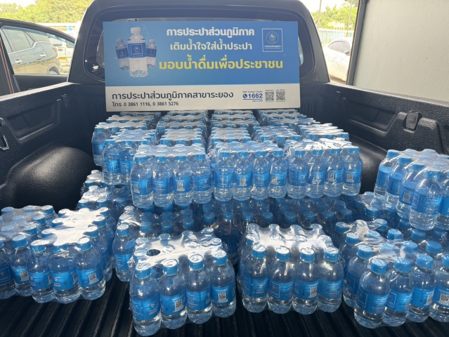การประปาส่วนภูมิภาค (กปภ.) สาขาระยอง โดยนายพลวัฒน์ บุญสุทธิ ผู้จัดการ กปภ.สาขาระยอง ร่วมสนับสนุนน้ำดื่มบรรจุขวดตราสัญลักษณ์ กปภ. ให้แก่สำนักงานสัสดีจังหวัดระยอง จำนวน ๖๐๐ ขวด เพื่อใช้บริการประชาชนในการตรวจเลิกทหารกองเกินเข้ารับราชการทหารฯ ประจำปี ๒๕๖๘ ในเขตพื้นที่จังหวัดระยอง เมื่อวันที่ ๒๗ มีนาคม ๒๕๖๘