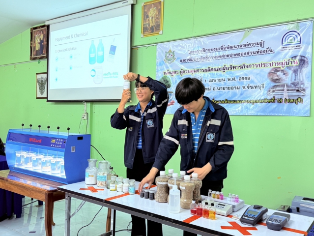 เมื่อวันที่ 1 เมษายน 2568 การประปาส่วนภูมิภาคเขต 1 (กปภ.ข.1) โดย นายปกิต ภาคธรรม ผู้อำนวยการการประปาส่วนภูมิภาคเขต 1 มอบหมายให้ นางสาวนันท์ภสร สิงห์ดำ หัวหน้างานควบคุมคุณภาพน้ำ 1 กองระบบผลิตและควบคุมคุณภาพน้ำ และนางสาวกรชา มั่นปาน หัวหน้างานควบคุมคุณภาพน้ำ 2 กองระบบผลิตและควบคุมคุณภาพน้ำ พร้อมด้วยพนักงานในสังกัด เป็นวิทยากรถ่ายทอดความรู้การผลิตน้ำประปาและการบำรุงรักษาระบบประปา ในหัวข้อหลักสูตร "ผู้ควบคุมการผลิตและผู้บริหารกิจการประปาหมู่บ้าน ประจำปีงบประมาณ 2568" โครงการฝึกอบรมเพื่อพัฒนาองค์ความรู้และเพิ่มประสิทธิภาพองค์กรปกคลองส่วนท้องถิ่น ซึ่งจัดโดยสำนักงานสิ่งแวดล้อมและควบคุมมลพิษที่ 13 (ชลบุรี) ณ ห้องประชุมองค์การบริหารส่วนตำบลวังใหม่ อำเภอนายายอาม จังหวัดจันทบุรี