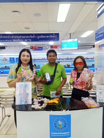 การประปาส่วนภูมิภาคสาขาขอนแก่น(ชั้นพิเศษ)จัดกิจกรรม หมดกังวล สนุกม่วนกับเทศกาลสงกรานต์ เพียงดาวน์โหลดเเอบพลิเคชัน Pwa plus life เเละ LINE OA : @pwathailand เเละชำระค่าติดตั้งน้ำประปาใหม่ รับทันที ฟรี ของที่ระลึก