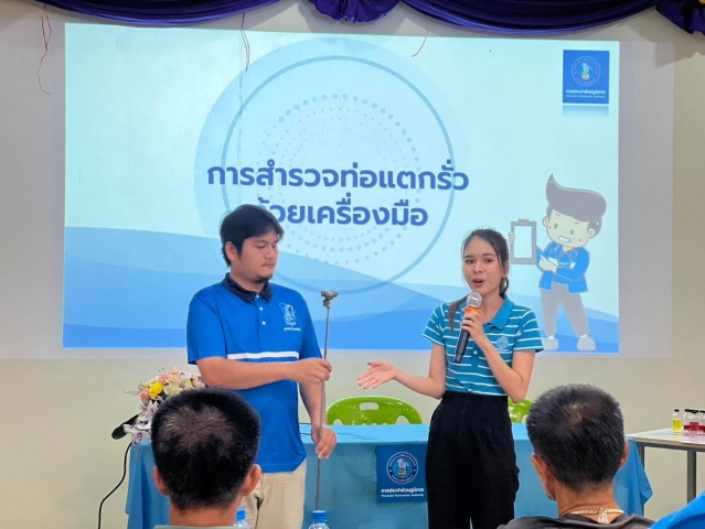 วันที่ 2 เมษายน 2568 เวลา 09.00น. นายนันทวรรธน์ สุขุมานนท์ ผจก.กปภ.สาขาสมุทรสงคราม, นางสาวนิตยา สอาด ผช.ผจก. พร้อมด้วย หัวหน้างานและพนักงานในสังกัด จัดกิจกรรมอบรมให้ความรู้ใน "โครงการเครือข่ายอาสา กปภ." ประจำปี 2568 โดยถ่ายทอดความรู้ให้กับผู้นำชุมชนตำบลแหลมใหญ่ จำนวนกว่า 30 ท่าน ที่เป็นสมาชิกเครือข่ายอาสา กปภ. โดยกิจกรรมประกอบด้วย การอบรมเชิงปฏิบัติการ กระบวนการตรวจวิเคราะห์คุณภาพน้ำเบื้องต้น โดย งานควบคุมคุณภาพน้ำ 2 กองควบคุมคุณภาพน้ำ การประปาส่วนภูมิภาคเขต 3 พร้อมทั้ง กปภ.สาขาสมุทรสงคราม ถ่ายทอดความรู้เกี่ยวกับ วิธีการอ่านมาตรวัดน้ำ การแจ้งหนี้ การรับชำระค่าน้ำประปา และ สาธิตการสำรวจหาท่อแตกรั่วโดยอุปกรณ์หูฟังรั่ว Noise Stick พร้อมทั้ง ส่งมอบอุปกรณ์หูฟัง Noise Stick ให้กับองค์การบริหารส่วนตำบลแหลมใหญ่ จำนวน 2 ชุด เพื่อให้ชุมชนสามารถสำรวจหาท่อแตกรั่วในพื้นที่ด้วยตนเอง ซึ่งได้รับเสียงตอบรับจากผู้นำชุมชนเป็นอย่างดี