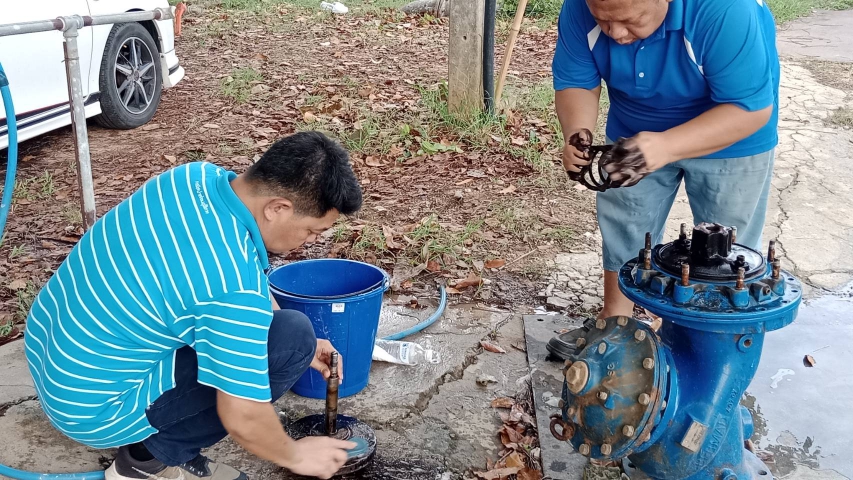 วันที่ 8 พฤษภาคม 2568 การประปาส่วนภูมิภาคสาขามหาสารคาม นำโดยนางสาวเยาวเรศ เตชะวงศ์ ผจก.กปภ.สาขามหาสารคาม พร้อมด้วย นายญาณะวัฒน์ ปี่ทอง ผช.ผจก.กปภ.สาขามหาสารคาม มอบหมายให้นายธนวรรธน์ โวทานสิริกุล หัวหน้างานบริการฯ และพนักงานในสังกัดงานบริการฯ ดำเนินการบำรุงรักษา DMA09 โดยการตรวจเช็คถอดล้าง PRV เพื่อเพิ่มประสิทธิภาพการจ่ายน้ำประปาบริการลูกค้า และลดความเสี่ยงของการเกิด PRV ล็อค ซึ่งอาจจะเป็นสาเหตุให้น้ำไม่ไหล เป็นการเตรียมความพร้อมด้านระบบจำหน่ายในการให้บริการน้ำประปาแก่ลูกค้า