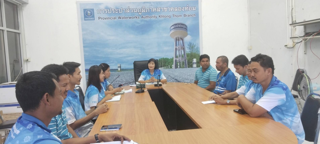 การประปาส่วนภูมิภาคสาขาคลองท่อม ภายใต้การบริหารงานโดย นางเพ็ญศรี ชตีพานี ผู้จัดการการประปาส่วนภูมิภาคสาขาคลองท่อม ได้จัดกิจกรรม Morning Talk ครั้งที่ 8/2568 ณ ห้องปฏิบัติการควบคุมคุณภาพน้ำ อาคารผลิตแม่ข่ายคลองท่อม เมื่อวันที่ 29 พฤษภาคม 2568 เวลา 09.30 น. โดยผู้จัดการกล่าวถึงการดำเนินงานในด้านต่างๆให้ได้ตามเป้าหมายที่กำหนดไว้ พูดคุยเรื่องการบริการลูกค้าและข้อร้องเรียน และมีการประชุมติดตามแผนการดำเนินงานศูนย์ราชการสะดวก (GECC) เน้นย้ำเรื่องมาตรฐานการให้บริการ การสร้างความพึงพอใจให้กับลูกค้า ให้เป็นไปตามเกณฑ์มาตรฐานที่กำหนด ประชุมคณะกรรมการดำเนินโครงการ WSP เพื่อติดตามการดำเนินโครงการให้เป็นไปตามแผนงานโครงการ WSP ประจำปี 2568 และประชุมโครงการบริหารจัดการน้ำสูญเสีย พร้อมทั้งร่วมพูดคุยแลกเปลี่ยนและรับฟังความคิดเห็นปัญหาต่างๆ ในการทำงาน เพื่อให้เป็นไปในทิศทางเดียวกันและเกิดประสิทธิภาพประสิทธิผลสูงสุดต่อ กปภ.สาขาคลองท่อมต่อไป