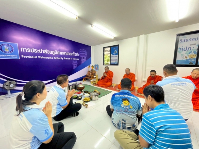 กปภ.สาขาตะกั่วป่า ทำบุญถวายภัตตาหารเพลแด่พระสงฆ์เนื่องในโอกาสวันคล้ายวันสถาปนาการประปาส่วนภูมิภาค ครบรอบ 46 ปี