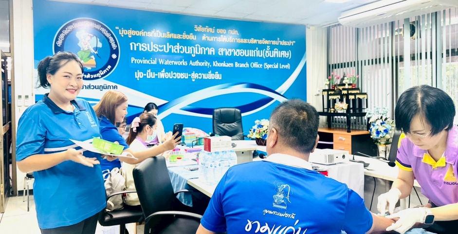 การประปาส่วนภูมิภาคสาขาขอนแก่น (ชั้นพิเศษ) นำโดย นายธีรศักดิ์ กิตติศิริวัฒนกุลผู้จัดการการประปาส่วนภูมิภาค (ชั้นพิเศษ) สาขาขอนแก่น พร้อมด้วย นางสาวนฤมล ประภาสมุทรผู้ช่วยผู้จัดการฯ หัวหน้างาน พนักงานและลูกจ้างในสังกัด ร่วมกิจกรรมตรวจสุขภาพประจำปี 2568 โดยโรงพยาบาลศูนย์อนามัยที่ 7 ขอนแก่น ได้ออกมาให้บริการตรวจสุขภาพเคลื่อนที่ในครั้งนี้ การตรวจสุขภาพ เป็นบริการทางสาธารณสุขเชิงป้องกันเพื่อตรวจสอบร่างกายของพนักงาน ถือเป็นแนวทางหนึ่งของสาธารณสุขเชิงป้องกัน และเป็นไปตามแผนความปลอดภัยและชีวอนามัย ในการทำงานของ กปภ.สาขาขอนแก่น (พ)