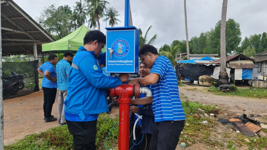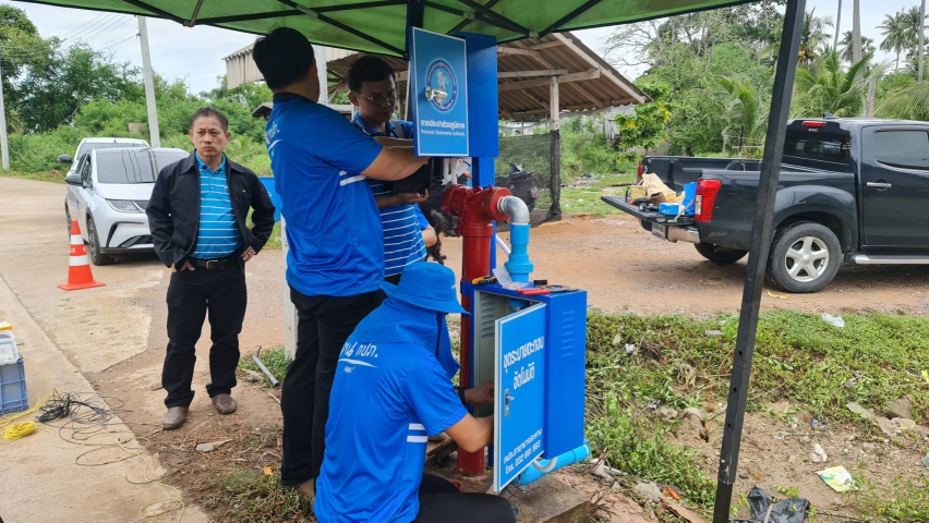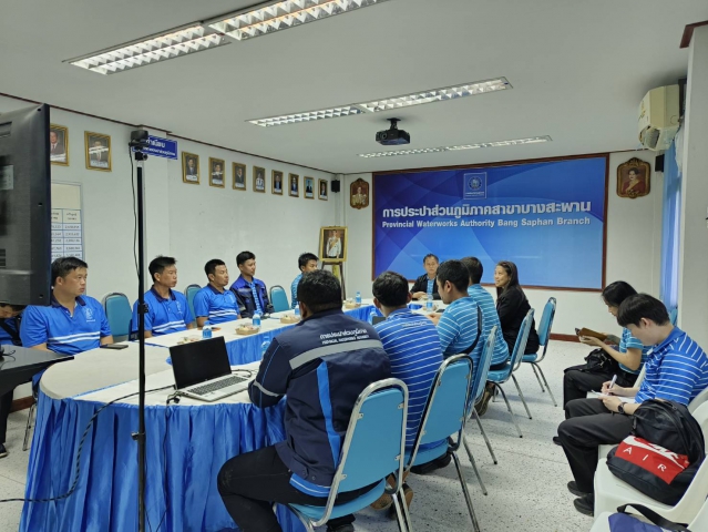 วันศุกร์ที่ 13 มิถุนายน 2568 การประปาส่วนภูมิภาคสาขาบางสะพาน นำโดย นางสาวนทีรัย เกรียงชัยพร ผู้อำนวยการกองสื่อสารองค์กร ในฐานะคณะทำงานและเลขานุการคณะทำงานพัฒนาและขยายผลนวัตกรรมของ กปภ. นายรัตนิกร หน่อแก้ว ผู้จัดการการประปาส่วนภูมิภาคสาขาบางสะพาน นายไอยเรศ ชัยกุล ผู้จัดการการประปาส่วนภูมิภาคสาขาปราณบุรี พร้อมด้วยพนักงานในสังกัดงานผลิต กปภ.สาขาบางสะพานและสาขาปราณบุรี ร่วมลงพื้นที่ ร่วมกับสำนักสื่อสารองค์กรและลูกค้าสัมพันธ์ ( กองลูกค้าสัมพันธ์ ) และ คณะทำงานพัฒนาด้านเทคนิคและต่อยอดนวัตกรรมชุดระบายตะกอนในเส้นท่อผ่านสมาร์นโฟน สำรวจรับฟังความคิดเห็นของลูกค้า ณ กปภ.สาขาบางสะพาน เนื่องจากพื้นที่ของ กปภ.สาขาบางสะพาน บริเวณ ต.แม่รำพึง ซึ่งพื้นที่ดังกล่าวอยู่ปลายเส้นท่อ ทำให้เกิดตะกอนสะสม และเกิดปัญหาน้ำขุ่น อีกทั้งยังต้องมีเจ้าหน้าที่เข้าดำเนินการระบายตะกอน 2-3 ครั้ง ต่อสัปดาห์ ทาง กปภ.สาขาบางสะพาน และชุดคณะทำงานพัฒนาฯ จึงได้นำนวัตกรรมชุดระบายตะกอนในเส้นท่อผ่านสมาร์ทโฟน มาติดตั้งในพื้นที่ที่ได้รับความเดือดร้อน เพื่อยกระดับความพึงพอใจของลูกค้าและเพื่อการให้บริการน้ำประปาที่มีคุณภาพให้กับลูกค้าต่อไป