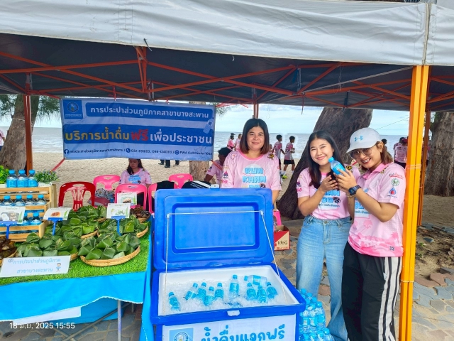 วันพุธที่ 19 มิถุนายน 2568 กปภ.สาขาบางสะพาน โดยนายรัตนิกร หน่อแก้ว ผจก.กปภ.สาขาบางสะพาน มอบหมายให้ นางนวพรรษ ครามทอง หัวหน้างาน 8 งานจัดเก็บรายได้ นางสาวศิริพร พัฒน์ชนะ หัวหน้างาน 8 งานอำนวยการ และนายทวีสิทธิ์ เล็กประดับ หัวหน้างาน 8 งานผลิต พร้อมด้วยพนักงานในสังกัด เข้าร่วมกิจกรรมวิ่งประจวบคีรีขันธ์ Run Khan Do "วิ่งกันดุ๊ 2" จัดตั้งบูธแจกน้ำดื่มตราสัญลักษณ์ กปภ.และขนมให้สำหรับผู้ที่เข้าร่วมกิจกรรมฯ โดยมีวัตถุประสงค์คือ 1. การส่งเสริมให้ประชาชนสร้างสุขภาพโดยการออกกำลังกายอย่างต่อเนื่อง 2.การสร้างเครือข่ายสุขภาพในระดับชุมชน อำเภอและจังหวัด 3.การส่งเสริมการท่องเที่ยวในพื้นที่จังหวัดประจวบคีรีขันธ์ในระดับอำเภอ ณ บริเวณหน้าศูนย์การเรียนรู้และท่องเที่ยวบ้านกรูด - ธารวรา บีช รีสอร์ท หมู่ที่ 3 ตำบลธงชัย อำเภอบางสะพาน จังหวัดประจวบคีรีขันธ์