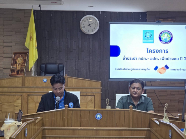 วันพุธที่ 25 มิถุนายน 2568 การประปาส่วนภูมิภาคสาขาภูเก็ต ภายใต้การบริหารงานของ นายสุกฤษฏิ์ กลิ่นสนธิ์ ผู้จัดการการประปาส่วนภูมิภาคสาขาภูเก็ต มอบหมายให้ นายวรวัฒน์ ต่อติด หัวหน้างานบริการและควบคุมน้ำสูญเสีย 1 นายเอกวัฒน์ สุขประจันทร์ หัวหน้างานผลิต และนางอารีรัตน์ สัมพันธรัตน์ หัวหน้างานอำนวยการ ร่วมกับงานควบคุมคุณภาพน้ำ 2 การประปาส่วนภูมิภาคเขต 4 พร้อมทั้งพนักงาน ลูกจ้างในสังกัด ลงพื้นที่จัดกิจกรรม โครงการน้ำประปา กปภ.- อปท. เพื่อปวงชน ประจำปี 2568 ณ เทศบาลตำบลเทพกระษัตรี ตำบลเทพกระษัตรี อำเภอถลาง จังหวัดภูเก็ต โดยกิจกรรมในครั้งนี้ กปภ.สาขาภูเก็ต และเทศบาลตำบลเทพกระษัตรี ได้ร่วมกันแลกเปลี่ยนความรู้เกี่ยวกับระบบการผลิตน้ำประปา ระบบจำหน่ายน้ำประปาและควบคุมน้ำสูญเสีย พร้อมทั้งได้ให้ความรู้และสาธิตการตรวจสอบคุณภาพน้ำเบื้องต้น เพื่อส่งเสริมและยกระดับคุณภาพน้ำประปา ให้ประชาชนอุปโภคบริโภคน้ำประปาที่สะอาด ได้มาตรฐานอย่างเท่าเทียมและทั่วถึง