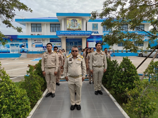 วันนี้ (18 สิงหาคม 2568) นายภูทอง ดวงเลิศ ผู้จัดการการประปาส่วนภูมิภาค (ชั้นพิเศษ) สาขาสมุทรสาคร พร้อมด้วยนายกิตติพันธ์ุ รักมีศรี ผช.ผจก.กปภ.(พ) สาขาสมุทรสาคร หัวหน้างานและพนักงานในสังกัด เข้าร่วมกิจกรรมเคารพธงชาติ พร้อมร้องเพลงชาติไทย ไหว้พระสวดมนต์ และร้องเพลงสรรเสริญพระบารมี ณ ด้านหน้าเสาธง สำนักงาน กปภ.สาขาสมุทรสาคร (พ) เพื่อแสดงถึงความรักชาติ ด้วยความสำนึกในความเสียสละของบรรพบุรษ และธำรงไว้ซึ่งสถาบันชาติ ศาสนา พระมหากษัตริย์ จากนั้นผู้บริหารและพนักงานในสังกัด ร่วมมือร่วมใจทำกิจกรรมจิตอาสา ปรับปรุงภูมิทัศน์ ทำความสะอาดโดยรอบสำนักงาน เพื่อให้เกิดภูมิทัศน์ที่สวยงาม สร้างความประทับใจให้แก่ประชาชนที่เข้ามาใช้บริการ รวมถึงเสริมสร้างความรัก ความสามัคคี ความสัมพันธ์อันดีให้เกิดขึ้นในองค์กร กิจกรรมดังกล่าวจัดขึ้นในทุกวันจันทร์ และวันเปิดงานวันแรกของสัปดาห์ ตามนโยบาย ผู้ว่าราชการจังหวัดสมุทรสาคร และ ผู้ว่าการการประปาส่วนภูมิภาค