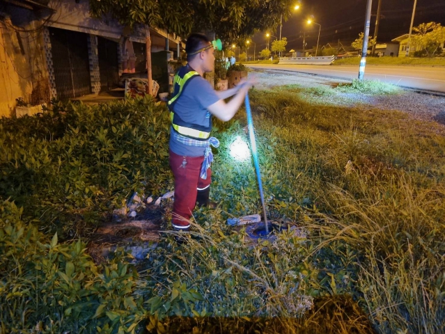 กปภ.สาขาปากพนัง ลงพื้นที่เดินสำรวจหาท่อแตก/ท่อรั่ว จากการทำ step test ตามแผนลดน้ำสูญเสีย บริเวณพื้นที่ DMA-04 บริเวณบ้านเกาะนางโดย ตำบลคลองน้อย ตำบลคลองกระบือ ตำบลปากพนังฝั่งตะวันตก อำเภอปากพนัง จังหวัดนครศรีธรรมราช