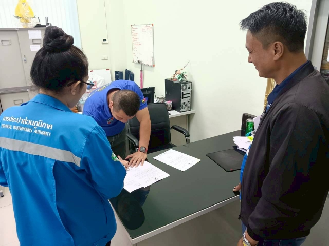 วันพุธที่ 20 สิงหาคม 2568 กปภ.สาขากาญจนบุรี โดย นายอธิวิศน์ เกิดภาณุพัฒน์ ผจก.กปภ.สาขากาญจนบุรี มอบหมายให้ นายประเสริฐ เสลาหอม ผช.ผจก. พร้อมด้วย นางสาวรุ่งอรุณ ไกรทองสุข หัวหน้างานจัดเก็บรายได้ ดำเนินการติดตามหนี้ค้างชำระของส่วนราชการ พร้อมประชาสัมพันธ์แจ้งลูกค้าให้เร่งดำเนินการชำระค่าน้ำภายในเดือน เพื่อป้องกันการงดจ่ายน้ำเป็นการลดจำนวนหนี้ค้างชำระและทำให้ กปภ.สาขา มีรายได้เพิ่มตามเป้าหมายต่อไป