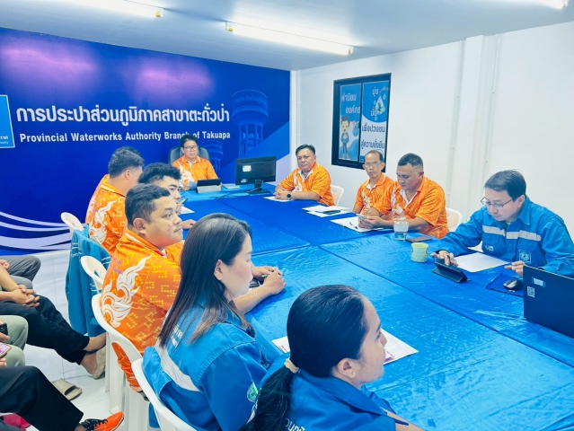 วันพฤหัสบดีที่ 28 สิงหาคม 2568 นายธำรง คุ้มเพชร ผู้จัดการการประปาส่วนภูมิภาคสาขาตะกั่วป่า จัดกิจกรรมสนทนายามเช้า (MORNING TALK) ครั้งที่ 11 ประจำปี 2568 โดยได้ถ่ายทอด กปภ. ยกระดับคุณภาพชีวิต เพิ่มศักยภาพบริการรวดเร็วตรงใจประชาชน เดินหน้าขับเคลื่อนภารกิจสำคัญ เพื่อยกระดับคุณภาพชีวิตของประชาชน ด้วยการส่งมอบน้ำประปาสะอาด ปลอดภัย ได้มาตรฐาน พร้อมยกระดับการให้บริการสู่ความทันสมัยและตอบโจทย์ประชาชนมากยิ่งขึ้น ตามนโยบายของกระทรวงมหาดไทย เพื่อเปลี่ยนผ่านสู่ภาครัฐที่รวดเร็วและตรงใจประชาชน ตลอดจนขับเคลื่อนเศรษฐกิจผ่านโครงการเพิ่มประสิทธิภาพการบริหารจัดการน้ำอย่างยั่งยืน เพื่อให้พนักงานรับทราบและปฏิบัติต่อไป กล่าวสรุปผลการดำเนินงานงวด 10 เดือน ปีงบประมาณ2568 แผนกงานผลิตติดตามเฝ้าระวังน้ำท่วมแรงต่ำ แผนกงานบริการฯจัดทำแผนจัดการน้ำสูญเสีย แผนกงานอำนวยการติดตามหนี้ค้างชำระที่มากกว่า 1 รอบบิล ทั้งเร่งประชาสัมพันธ์การทำธุรกรรมออนไลน์ PWA Away On ส่งเสริมการใช้ PWA Plus Life และ Line Official