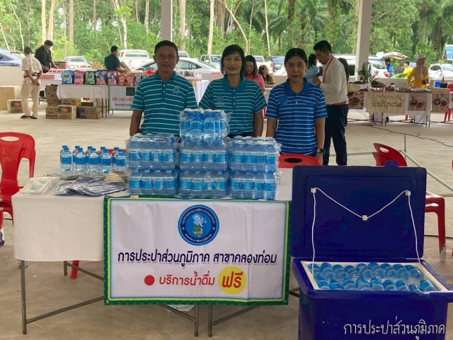 วันที่ 7 สิงหาคม 2568 การประปาส่วนภูมิภาคสาขาคลองท่อม นำโดย นางเพ็ญศรี ชตีพานี ผู้จัดการการประปาส่วนภูมิภาคสาขาคลองท่อมพร้อมด้วยนางสาวทัชมาภรณ์ กราพันธุ์ หัวหน้างานอำนวยการ และพนักงานในสังกัด มอบน้ำดื่มบรรจุขวดตราสัญลักษณ์ กปภ. จำนวน 200 ขวด ประจำจุดบริการน้ำดื่มเพื่อบริการประชาชนที่เข้าร่วมกิจกรรมโครงการเทศบาลคลองพนพัฒนาพบประชาชน ประจำปี 2568 ณ ศาลาโรงเลี้ยงบ้านดินนา วัดป่าไตรสรณคมน์ หมูที่ 2 บ้านดินนา ตำบลคลองพน อำเภอคลองท่อม จังหวัดกระบี่