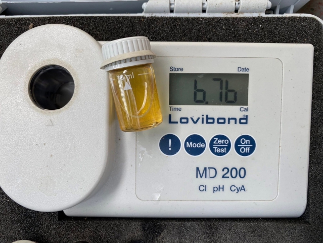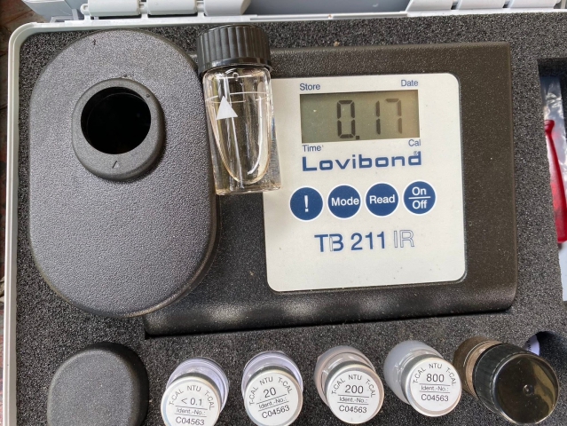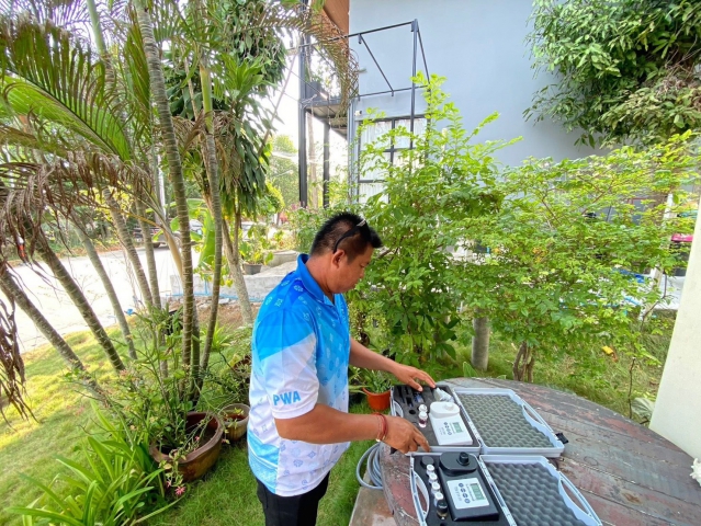 วันที่ 31 สิงหาคม 2568 กปภ.สาขาเกาะพะงัน ลงพื้นที่สุ่มตรวจคุณภาพน้ำประปา ณ หมู่ 1 ต.เกาะพะงัน อ.เกาะพะงัน จ.สุราษฎร์ธานี โดยเก็บตัวอย่างน้ำจากก๊อกน้ำที่บ้านของผู้ใช้น้ำไปตรวจสอบคุณภาพน้ำ ซึ่งเป็นหนึ่งในกระบวนการติดตามประเมินผลและควบคุมคุณภาพน้ำประปาให้ได้มาตรฐาน จากการตรวจสอบพบคลอรีนเหลือในเส้นท่อ 0.42 ppm (มิลลิกรัมต่อลิตร) (ค่ามาตรฐานไม่น้อยกว่า 0.2 ppm (มิลลิกรัมต่อลิตร) และพบค่าความขุ่น 0.17 NTU มีค่า pH 6.76 อยู่ในเกณฑ์มาตรฐานของ กปภ. กำหนด (ความขุ่น <4 NTU , pH 6.5 - 8.5)