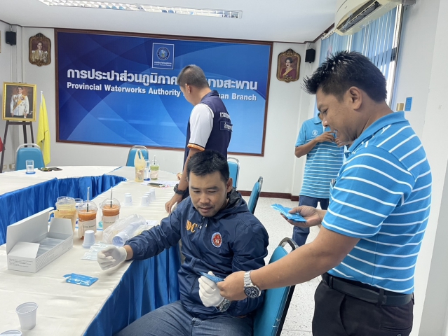 วันพฤหัสบดีที่ 4 กันยายน 2568 การประปาส่วนภูมิภาคสาขาบางสะพาน นำโดย นายรัตนิกร หน่อแก้ว ผู้จัดการการประปาส่วนภูมิภาคสาขาบางสะพาน พร้อมด้วยพนักงานและลูกจ้างในสังกัด ได้ดำเนินการเข้าร่วมโครงการมหาดไทยสีขาว สร้างพื้นที่ปลอดภัยหยุดยั้งยาเสพติด โดย ตรวจปัสสาวะหาสารเสพติดพนักงานและลูกจ้างในสังกัด เพื่อเป็นแนวทางในการป้องกันและเฝ้าระวังการแพร่ระบาดของยาเสพติด อันเป็นการแสดงถึงความรับผิดชอบทางสังคม พร้อมทั้งให้ความร่วมมือในการป้องกันและแก้ไขปัญหายาเสพติดตามนโยบายของรัฐบาล โดยได้รับการสนับสนุนจากเจ้าหน้าที่กรมปกครอง สังกัดที่ว่าการอำเภอบางสะพาน พร้อมด้วยสมาชิก อส.อำเภอบางสะพาน โดยได้เข้าดำเนินการตรวจหาสารเสพติด พนักงานทุกคนในสังกัดประปาส่วนภูมิภาคสาขาบางสะพาน ผลตรวจเป็นลบ ปลอดสารเสพติด 100 % ณ ห้องประชุมชั้น 2 การประปาส่วนภูมิภาคสาขาบางสะพาน