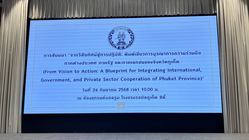 วันพุธที่ 24 กันยายน 2568 การประปาส่วนภูมิภาคสาขาภูเก็ต โดยนายสุกฤษฏิ์ กลิ่นสนธิ์ ผู้จัดการการประปาส่วนภูมิภาคสาขาภูเก็ต เข้าร่วมสัมมนา "จากวิสัยทัศน์สู่การปฏิบัติ : พิมพ์เขียวการบูรณาการความร่วมมือภาคต่างประเทศ ภาครัฐ และภาคเอกชนจังหวัดภูเก็ต" (From Vision to Action : A Blueprint for Integrating International, Government, and Private Sector Cooperation of Phuket Province) ณ ห้องแกรนด์บอลรูม โรงแรมรอยัลภูเก็ต ซิตี้