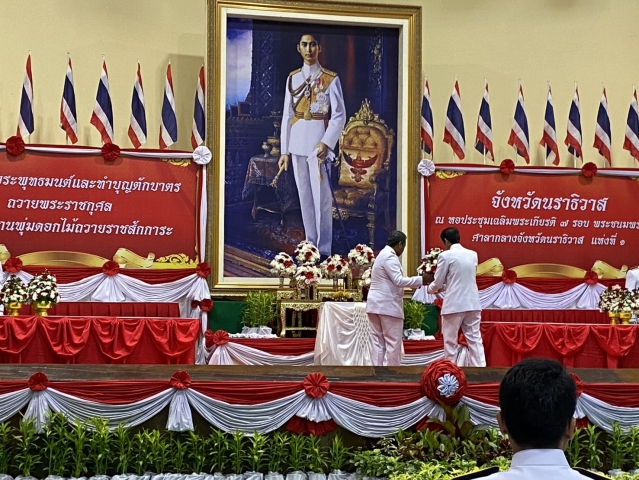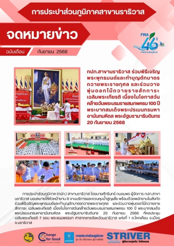การประปาส่วนภูมิภาค (กปภ.) สาขานราธิวาส โดยนายศักรินทร์ ถนอมพร ผู้จัดการ กปภ.สาขานราธิวาส มอบหมายให้หัวหน้างาน 8 งานบริการและควบคุมน้ำสูญเสีย พร้อมด้วยพนักงานในสังกัด ร่วมพิธีเจริญพระพุทธมนต์และทำบุญตักบาตรถวายพระราชกุศล และร่วมวางพุ่มดอกไม้ถวายราชสักการะ เฉลิมพระเกียรติ เนื่องในโอกาสวันคล้ายวันพระบรมราชสมภพครบ 100 ปี พระบาทสมเด็จพระปรเมนทรมหาอานันทมหิดล พระอัฐมรามาธิบดินทร 20 กันยายน 2568 ที่ หอประชุมเฉลิมพระเกียรติ 7 รอบ พระชนมพรรษา ศาลากลางจังหวัดนราธิวาส แห่งที่ 1 ต.โคกเคียน อ.เมือง จ.นราธิวาส
