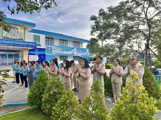 วันนี้ (22 กันยายน 2568) นายภูทอง ดวงเลิศ ผู้จัดการการประปาส่วนภูมิภาค (ชั้นพิเศษ) สาขาสมุทรสาคร พร้อมด้วย นายกิตติพันธุ์ รักมีศรี ผช.ผจก.กปภ.(พ) สาขาสมุทรสาคร หัวหน้างานและพนักงานในสังกัด ร่วมกิจกรรมเคารพธงชาติและร้องเพลงชาติไทย ไหว้พระสวดมนต์ และร้องเพลงสรรเสริญพระบารมี ณ บริเวณหน้าเสาธงสำนักงานการประปาส่วนภูมิภาคสาขาสมุทรสาคร (ชั้นพิเศษ) เพื่อแสดงถึงความรักชาติ ความสำนึกในพระมหากรุณาธิคุณ และการธำรงไว้ซึ่งสถาบันชาติ ศาสนา พระมหากษัตริย์ ภายหลังเสร็จสิ้นกิจกรรม ผู้บริหารและพนักงานได้ร่วมกันทำความสะอาดพื้นที่โดยรอบสำนักงาน เพื่อสร้างภูมิทัศน์ที่สวยงามและความประทับใจแก่ผู้มาใช้บริการ ตลอดจนส่งเสริมความรัก ความสามัคคี และความสัมพันธ์ที่ดีภายในองค์กร กิจกรรมดังกล่าวจัดขึ้นทุกวันจันทร์ และวันทำงานวันแรกของสัปดาห์ ตามนโยบายผู้ว่าราชการจังหวัดสมุทรสาคร และผู้ว่าการการประปาส่วนภูมิภาค