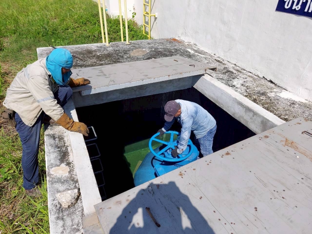 กปภ.สาขาขอนแก่น (พ) ดำเนินการซ่อมถังน้ำใส ณ สถานีผลิตน้ำอุบลรัตน์ 2 โดยไม่มีการหยุดจ่ายน้ำ สร้างความมั่นใจต่อลูกค้าประชาชนในเขตพื้นที่ให้บริการน้ำประปา