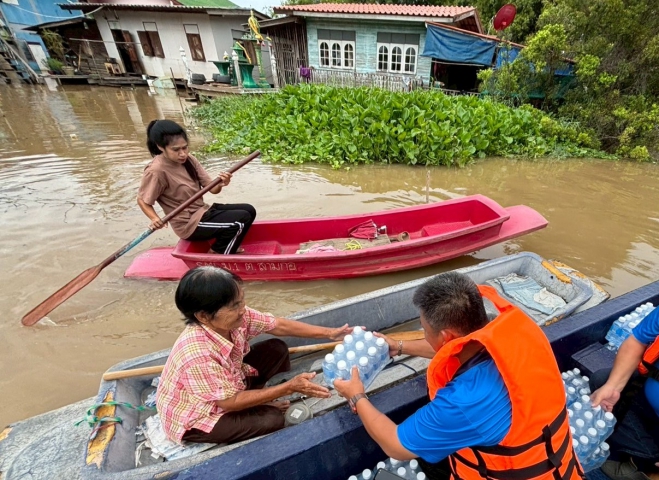 การประปาส่วนภูมิภาค (กปภ.) โดย กปภ.เขต 2 และ กปภ.สาขาเสนา ร่วมกับองค์การบริหารส่วนตำบลรางจรเข้ ลงพื้นที่มอบน้ำดื่มบรรจุขวดตราสัญลักษณ์ กปภ. จำนวน 10,008 ขวด พร้อมข้าวสาร เพื่อส่งต่อความห่วงใยและบรรเทาความเดือดร้อนให้แก่ผู้ประสบอุทกภัยในพื้นที่ อ.เสนา จ.พระนครศรีอยุธยาโดย กปภ. ขอเป็นกำลังใจและพร้อมเคียงข้างประชาชนเพื่อดูแลคุณภาพชีวิตอย่างต่อเนื่องในทุกสถานการณ์