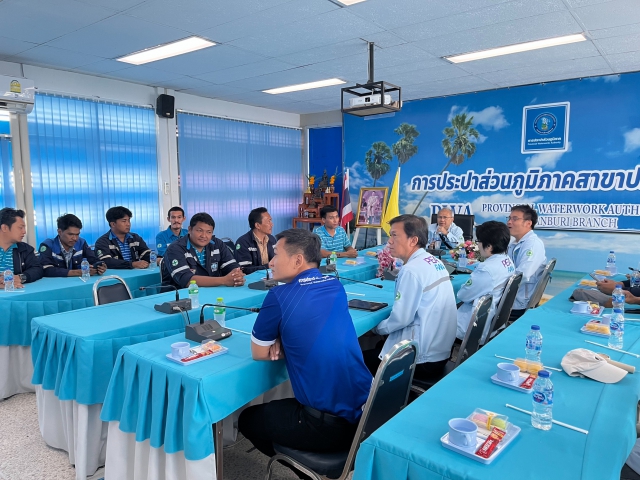 ผู้ช่วยผู้จัดการ กปภ.สาขาปราณบุรี พร้อมด้วย หัวหน้างาน พนักงาน ในสังกัด ทำการต้อนรับ นายศรายุธ แก้วสินธุ์ รองผู้ว่าการ(ปฏิบัติการ 4)