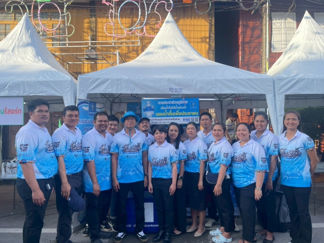 กปภ.สาขาหลังสวน แจกน้ำดื่มตราสัญลักษณ์ กปภ. ในกิจกรรม "เปิดเมืองกินฟรี"ประจำปี 2568