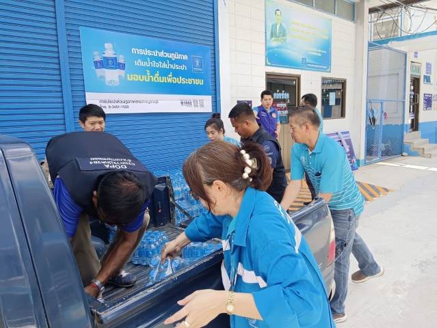 วันศุกร์ที่ 10 ตุลาคม 2568 กปภ.สาขากาญจนบุรี โดย นายอธิวิศน์ เกิดภาณุพัฒน์ ผจก.กปภ.สาขากาญจนบุรี มอบหมายให้ นายณรงค์ศักดิ์ แก้วเขียว ผช.ผจก พร้อมด้วยหัวหน้างานและพนักงานในสังกัด มอบน้ำดื่มบรรจุขวดตราสัญลักษณ์ กปภ.จำนวน 2,000 ขวด ให้กับที่ว่าการอำเภอบ่อพลอย เพื่อใช้ในการต้อนรับท่านนายกรัฐมนตรีและรัฐมนตรีว่าการกระทรวงมหาไทย พร้อมคณะ ในพิธีเปิดงานเทศกาลเห็ดโคนอัญมณีของดีบ่อพลอย และงานกาชาดอำเภอบ่อพลอย ครั้งที่ 24 ณ ศูนย์จำหน่ายและแสดงสินค้าหนึ่งตำบลหนึ่งผลิตภัณฑ์ OTOP เทศบาลตำบลบ่อพลอย