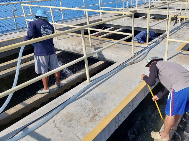วันที่ 16 ตุลาคม 2568 การประปาส่วนภูมิภาคสาขากุยบุรี โดยนางอารีนันท์ นราวัฒนเศรษฐ์ ผู้จัดการ กปภ.สาขากุยบุรี ได้มอบหมายให้นายปรีดา เกษมสุขไพศาล หัวหน้างานผลิต พร้อมด้วยพนักงานและลูกจ้าง ร่วมกันดำเนินการล้างถังตกตะกอน ณ สถานีผลิตน้ำ กปภ.สาขากุยบุรี การดำเนินการครั้งนี้เป็นไปตามแผนงานโครงการ "การบริหารจัดการน้ำสะอาด" (Water Safety Plan: WSP) ซึ่งเป็นมาตรฐานสากลในการควบคุมคุณภาพน้ำประปาตั้งแต่แหล่งน้ำดิบจนถึงผู้บริโภค เพื่อป้องกันความเสี่ยงที่อาจเกิดขึ้นกับระบบผลิตน้ำ การล้างถังตกตะกอนเป็นกระบวนการสำคัญในการรักษาคุณภาพน้ำประปา โดยจะช่วยกำจัดตะกอนและสิ่งสกปรกที่สะสมในระบบ เพื่อสร้างความมั่นใจให้กับผู้ใช้น้ำว่าจะได้รับน้ำประปาที่สะอาด ปลอดภัย และมีคุณภาพตามมาตรฐานที่การประปาส่วนภูมิภาคกำหนดไว้