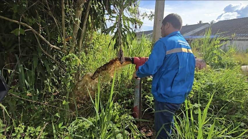 วันพุธที่ 15 ตุลาคม 2568 การประปาส่วนภูมิภาคสาขาบางสะพาน โดย นายณรงค์ชัย จงดี ผู้จัดการการประปาส่วนภูมิภาคสาขาบางสะพาน มอบหมายให้งานบริการและควบคุมน้ำสูญเสีย ลงพื้นที่ดำเนินการโบล์วระบายตะกอนในเส้นท่อ ในบริเวณพื้นที่ตำบลพงศ์ประศาสน์ อำเภอบางสะพาน จังหวัดประจวบคีรีขันธ์ ซึ่งเป็นปลายสายของเส้นท่อประปา ทั้งนี้ เพื่อให้เกิดระบบการดำเนินการจัดการผลิตและการจ่ายน้ำประปาได้อย่างมีคุณภาพและสะอาด ตั้งแต่แหล่งน้ำจนถึงบ้านผู้ใช้น้ำให้เป็นไปตามมาตรฐาน กปภ.