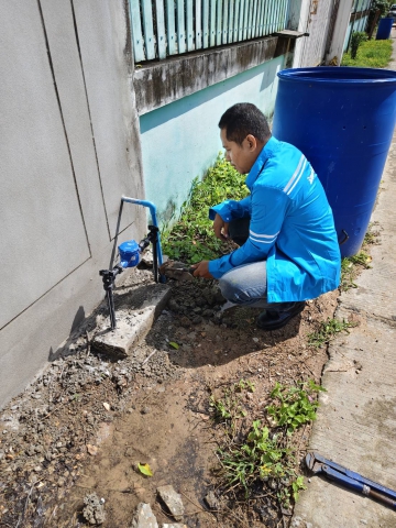 หลังได้รับแจ้งจากลูกค้าให้เข้าตรวจสอบกรณีท่อประปารั่วบริเวณขามาตรวัดน้ำ ที่บ้านเลขที่ 192/9 หมู่ที่ 3 ตำบลคลองแม่ลาย อำเภอเมืองกำแพงเพชร จังหวัดกำแพงเพชร