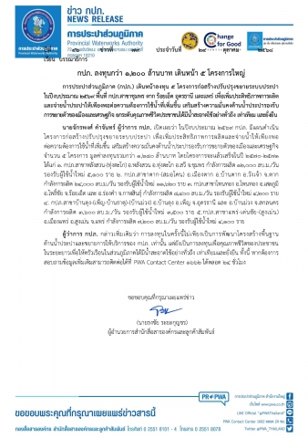 ผู้ว่าการ กปภ.กล่าวเพิ่มเติมว่า การลงทุนในครั้งนี้ไม่เพียงเป็นการพัฒนาโครงสร้างพื้นฐานด้านน้ำประปาและขยายการให้บริการของ กปภ. เท่านั้น แต่ยังเป็นการลงทุนเพื่อคุณภาพชีวิตของประชาชนในระยะยาวเพื่อให้ครัวเรือนในส่วนภูมิภาคได้มีน้ำสะอาดใช้อย่างทั่วถึง เท่าเทียมและยั่งยืน ทั้งนี้ หากต้องการสอบถามข้อมูลเพิ่มเติมสามารถติดต่อได้ที่ PWA Contact Center 1662 ได้ตลอด 24 ชั่วโมง
