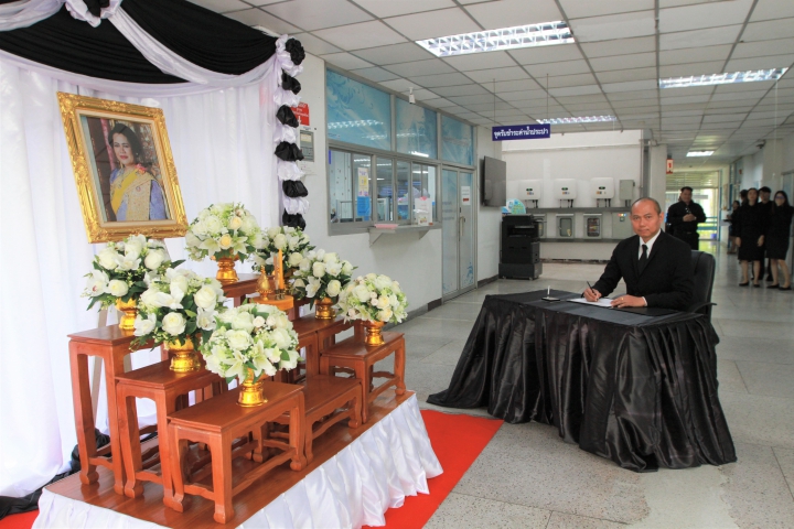 วันที่ 29 ตุลาคม 2568 การประปาส่วนภูมิภาคเขต 1 (กปภ.ข.1) จัดพิธีลงนามถวายความอาลัยเบื้องหน้าพระฉายาลักษณ์ สมเด็จพระนางเจ้าสิริกิติ์ พระบรมราชินีนาถ พระบรมราชชนนีพันปีหลวง นำโดย นายปกิต ภาคธรรม ผู้อำนวยการการประปาส่วนภูมิภาคเขต 1 พร้อมด้วย นายโอฤทธิ์ นักธรรม ผู้ช่วยผู้อำนวยการการประปาส่วนภูมิภาคเขต 1 (บริหาร) นายสุรวัฒน์ พลมณี ผู้ช่วยผู้อำนวยการการประปาส่วนภูมิภาคเขต 1 (วิชาการ) นำคณะผู้บริหาร พนักงานและลูกจ้างในสังกัด กปภ.ข.1 ร่วมลงนามถวายความอาลัย เพื่อน้อมรำลึกในพระมหากรุณาธิคุณและแสดงความไว้อาลัยถวายความจงรักภักดี ณ ห้องโถงอาคาร 1 สำนักงาน กปภ.ข.1 จ.ชลบุรี