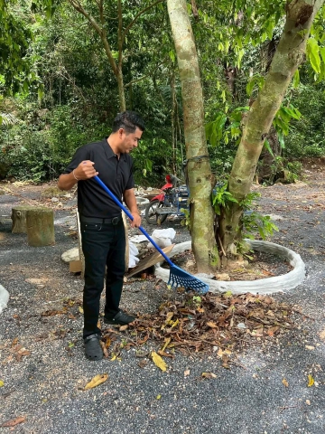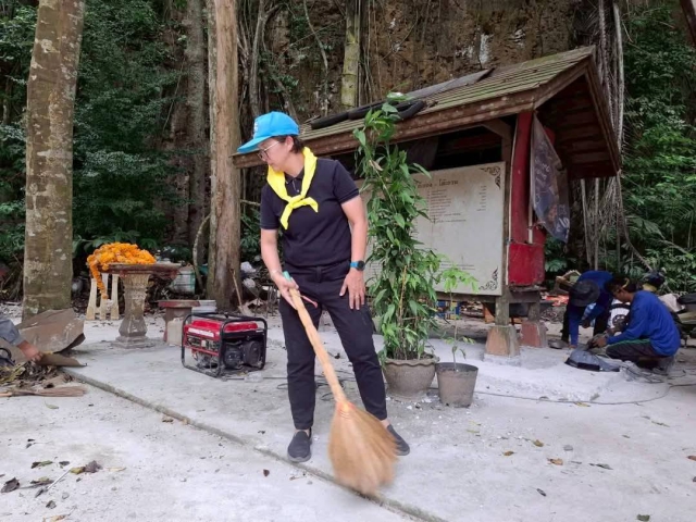 ในการนี้ทีมงานได้ร่วมกันทำความสะอาด และกวาดขยะบริเวณพื้นที่ต่างๆ ของศาล เพื่อให้สถานที่ศักดิ์สิทธิ์แห่งนี้สะอาดและเอื้อต่อการสักการะบูชา