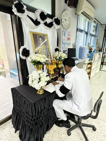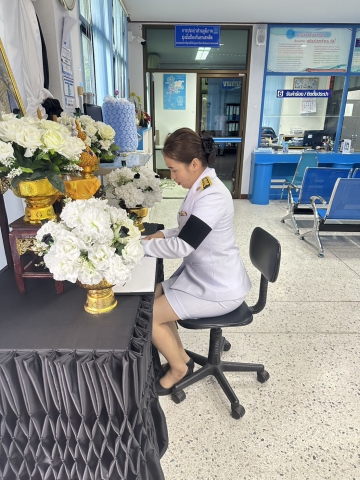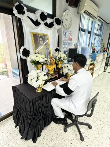 วันพฤหัสบดีที่ 30 ตุลาคม 2568 การประปาส่วนภูมิภาคสาขาบางสะพาน นำโดย นายณรงค์ชัย จงดี ผู้จัดการการประปาส่วนภูมิภาคสาขาบางสะพาน พร้อมด้วย นางนวพรรษ ครามทอง หัวหน้างาน 8 งานจัดเก็บรายได้ นางสาวศิริพร พัฒน์ชนะ หัวหน้างาน 8 งานอำนวยการ และพนักงานในสังกัด ร่วมลงนามถวายความอาลัย สมเด็จพระนางเจ้าสิริกิติ์ พระบรมราชินีนาถ พระบรมราชชนนีพันปีหลวง ต่อหน้าพระบรมฉายาลักษณ์ ด้วยสำนึกในพระมหากรุณาธิคุณอันหาที่สุดมิได้ ณ สำนักงานการประปาส่วนภูมิภาคสาขาบางสะพาน
