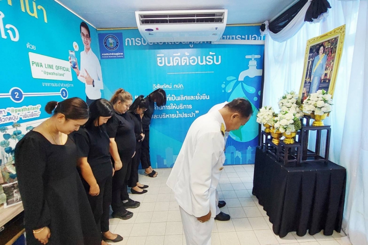 วันจันทร์ที่ 10 พฤศจิกายน 2568 นายจีรศักดิ์ หัถชีพ ผู้จัดการการประปาส่วนภูมิภาคสาขาระนอง และ นายทินกร บุญญานุพันธ์ ผู้ช่วยผู้จัดการฯ พร้อมด้วยพนักงานในสังกัด ร่วมลงนามถวายความอาลัยและถวายสักการะหน้าพระฉายาลักษณ์ สมเด็จพระนางเจ้าสิริกิติ์ พระบรมราชินีนาถ พระบรมราชชนนีพันปีหลวง ณ สำนักงาน กปภ.สาขาระนอง