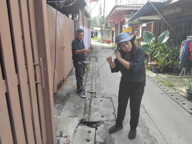 วันที่ 13 พฤศจิกายน 2568 การประปาส่วนภูมิภาคสาขาอ้อมน้อย นำโดยนายสุธี แสงเจือ ผจก.กปภ.สาขาอ้อมน้อย พร้อมด้วย นายนพพล วัฒนสืบสิน ผช. ผจก. หัวหน้างานบริการฯ 1, 2 และพนักงานงานบริการ ลงพื้นที่ทำกิจกรรมลดน้ำสูญเสียเชิงรุก (ALC) โดยเดินสำรวจ ค้นหาท่อแตก/ท่อรั่ว บริเวณชุมชนเลียบทางรถไฟศาลายา ต.ศาลายา อ.พุทธมณฑล จ.นครปฐม นอกจากนี้ยังพูดคุยสอบถามถึงการใช้น้ำประปา พร้อมแนะนำให้ลูกค้าตรวจสอบอุปกรณ์ประปาภายในบ้านให้อยู่ในสภาพดี โดยเป้าหมายในการเดินครั้งนี้เพื่อเฝ้าระวังโซนพื้นที่ที่มีแรงดันสูง เพื่อเฝ้าระวังการจ่ายน้ำและควบคุมปริมาณน้ำสูญเสียให้ได้ตามเป้าหมายต่อไป