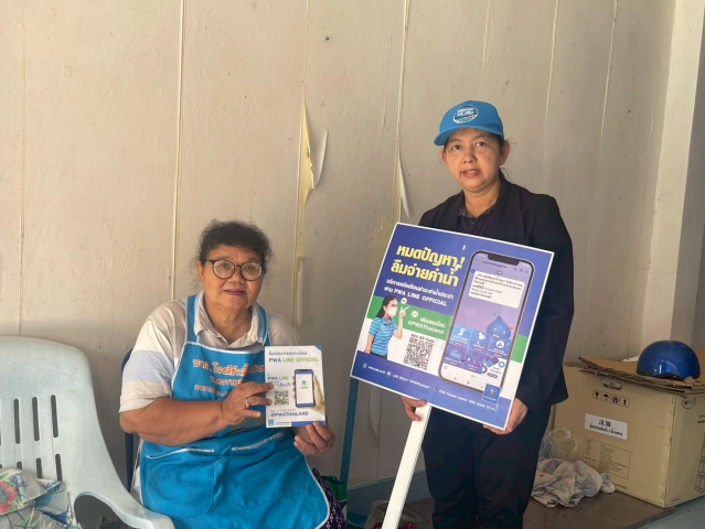 วันศุกร์ ที่ 14 พฤศจิกายน 2568 กปภ.สาขาหลังสวน นำโดย นายอนุเทพ แดงบุญ ผู้จัดการการประปาส่วนภูมิภาคสาขาหลังสวน พร้อมหัวหน้างาน และพนักงานในสังกัด ลงพื้นที่พบปะลูกค้าโครงการมุ่งมั่นเพื่อปวงชนเติมใจให้กัน ณ ตลาดเอื้ออารี ม.7 ต.ละแม อ.ละแม จ.ชุมพร เพื่อพูดคุย สอบถามปัญหาการใช้น้ำ แนะนำการใช้ PWA LINE OFFICIAL Add Friend "@pwathailand" แอพ PWA Plus Life+ เพื่อให้ลูกค้าทราบข้อมูลเกี่ยวกับประปา พร้อมให้บริการตรวจสอบมิเตอร์น้ำ , ซ่อมแซมอุปกรณ์ที่ชำรุด และสอบถามปัญหาการใช้น้ำต่างๆ เพื่อหาแนวทางแก้ไขร่วมกัน