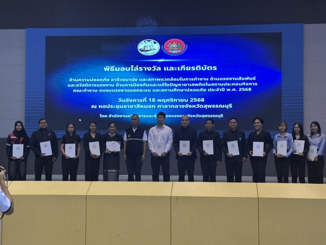 วันอังคารที่ 18 พฤศจิกายน 2568 เวลา 13.30 น. การประปาส่วนภูมิภาคสาขาเดิมบางนางบวช นำโดยนายยุทธนา ต๊ะปินตา ผู้จัดการการประปาส่วนภูมิภาคสาขาเดิมบางนางบวช เข้าร่วม พิธีมอบโล่และเกียรติบัตร ประจำปี พ.ศ. 2568 ด้านความปลอดภัย อาชีวอนามัย และสภาพแวดล้อมในการทำงานด้านแรงงานสัมพันธ์ และสวัสดิการแรงงาน ด้านการป้องกัน และแก้ไขปัญหายาเสพติดในสถานประกอบกิจการ โดยการประปาส่วนภูมิภาคสาขาเดิมบางนางบวช ได้รับมอบเกียรติบัตร ตามโครงการโรงงานสีขาว ระดับที่ 1 ณ หอประชุมอาชาสีหมอก ศาลากลางจังหวัดสุพรรณบุรี ตำบลสนามชัย อำเภอเมืองสุพรรณบุรี จังหวัดสุพรรณบุรี โดยท่านผู้ว่าราชการจังหวัดสุพรรณบุรี เป็นประธาน