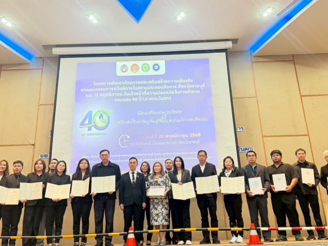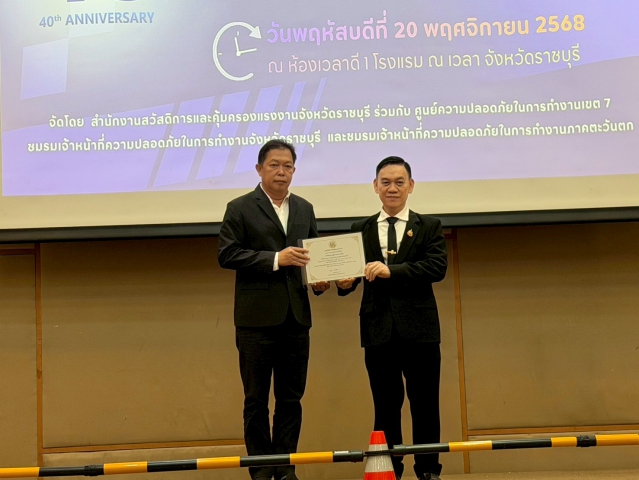 นายปกรณ์ บัวทอง ผู้จัดการการประปาส่วนภูมิภาคสาขาปากท่อ เข้ารับประกาศเกียรติคุณสถานประกอบกิจการที่ได้รับการรับรองมาตรฐานการป้องกัน และแก้ไขปัญหายาเสพติดในสถานประกอบกิจการ (มยส.) และรับใบประกาศเกียรติคุณ เพื่อแสดงว่าได้นำแนวปฏิบัติการใช้แรงงานที่ดี (Good Labour Practices:GLP) จาก กรมสวัสดิการและคุ้มครองแรงงาน กระทรวงแรงงาน เนื่องในวันเปิดโครงการพัฒนาศักยภาพและเสริมสร้างความเข้มแข็งแก่คณะกรรมการสวัสดิการในสถานประกอบกิจการ จังหวัดราชบุรี และวันเจ้าหน้าที่ความปลอดภัยในการทำงานครบรอบ 40 ปี (ภาคตะวันตก) ณ ห้องเวลาดี 1 โรงแรม ณ กาลเวลา เมื่อวันที่ 20 พฤศจิกายน 2568