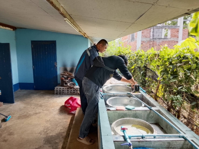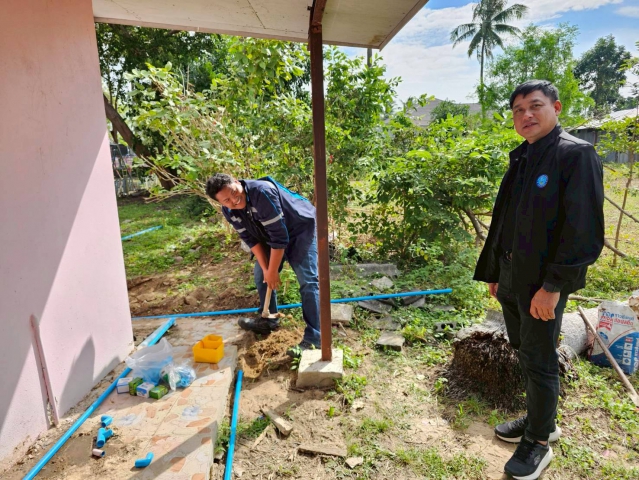พร้อมด้วยหัวหน้างาน และพนักงานในสังกัด ตรวจสอบระบบประปาภายใน และ"บริการซ่อมฟรี ไม่คิดค่าแรง" ณ โรงเรียนบ้านใหม่