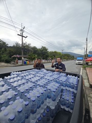ตระหนักถึงความเดือดร้อนเร่งด่วนของชาวหาดใหญ่ จึงร่วมบริจาคน้ำดื่มตราสัญลักษณ์ กปภ. รวมทั้งจัดหาน้ำดื่มเพิ่มเติมจากผู้ผลิตภายนอกที่มีมาตรฐาน