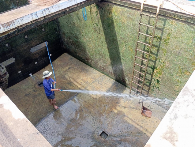 วันจันทร์ที่ 24 พฤศจิกายน 2568 นายอธิวิศน์ เกิดภาณุพัฒน์ ผู้จัดการการประปาส่วนภูมิภาคสาขากาญจนบุรี พร้อมด้วยนายณรงค์ศักดิ์ แก้วเขียว ผู้ช่วยผู้จัดการ, นายโยธิน พลเรือง หัวหน้างานผลิต และเจ้าหน้าที่งานผลิต กปภ.สาขากาญจนบุรี ได้ร่วมทำกิจกรรมล้างถังตกตะกอน โรงกรองน้ำขนาด 160 ลบ.ม./ชม. สถานีผลิตน้ำแม่ข่ายกาญจนบุรี, เพื่อเป็นการดูแล, บำรุงรักษาระบบผลิตน้ำ, รักษาความสะอาดพื้นที่ทำงาน อันก่อให้เกิดประสิทธิภาพในการทำงาน, สร้างนิสัย และสุขภาพที่ดีของผู้ปฏิบัติงาน