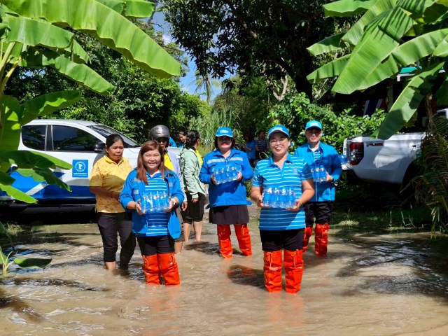 กปภ.สาขาพนัสนิคม มอบน้ำดื่มให้ลูกค้าที่ประสบ อุทกภัย น้ำท่วม พื้นที่ ต.นามะตูม อ.พนัสนิคม จ.ชลบุรี